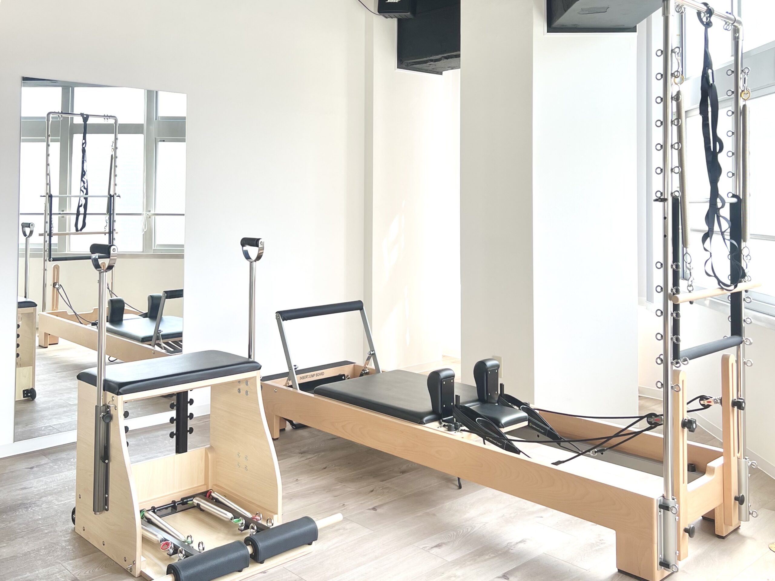 ピラティスマシンを完備しており、リフォーマー、ハーフタワー、チェアなど主要ピラティスマシンに加えてプロップスも準備しております。1000種類以上あるエクササイズの中からあなたに適したエクササイズを選定しレッスンを組み立てていきます。