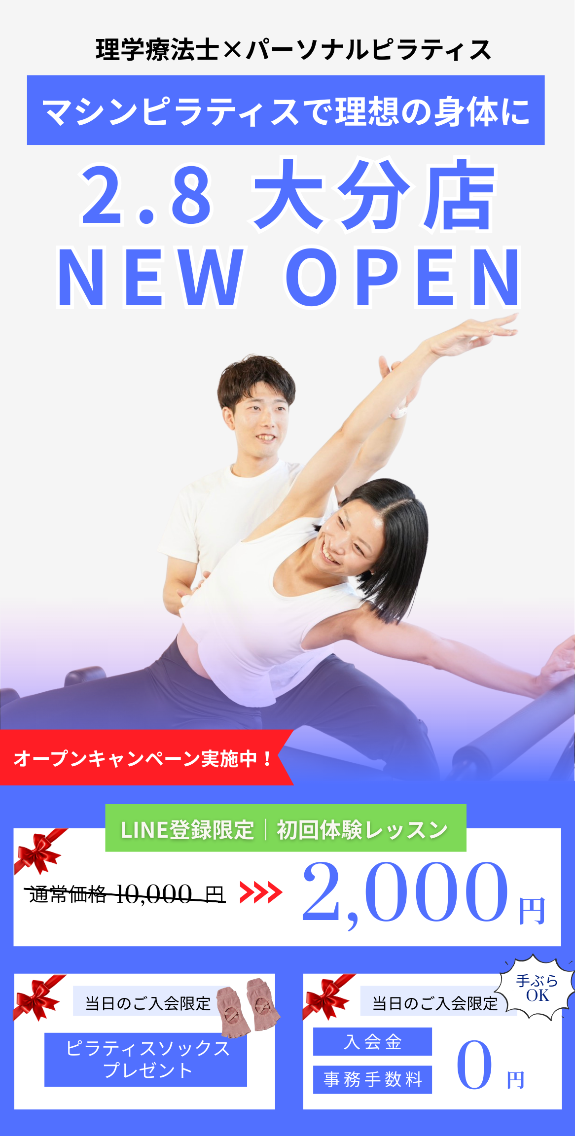 理学療法士の国家資格を保有したインストラクターが在籍しております。身体の専門家であるためあなたの身体の動きや癖を見抜き、姿勢改善や身体の不調を整えたりと様々なご要望にお応えします。